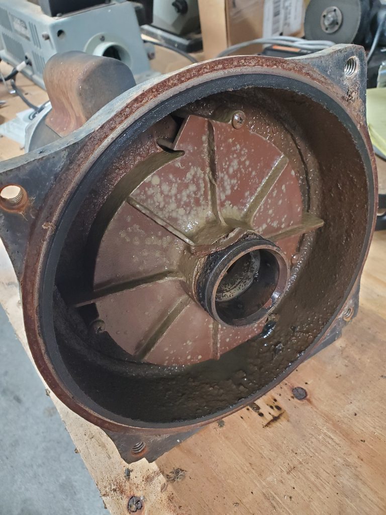The impeller cavity looks like it may have had sediment or biofilm buildup, which could’ve jammed the impeller or stressed the motor bearings.