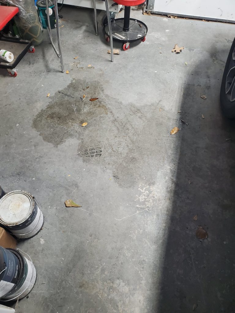 Looking at the evidence on the floor, a puddle of water led me to think it came from the car. I’ve seen this pool before but always associated it with the car dripping off in the garage. Nope, not this time the car was bone dry.