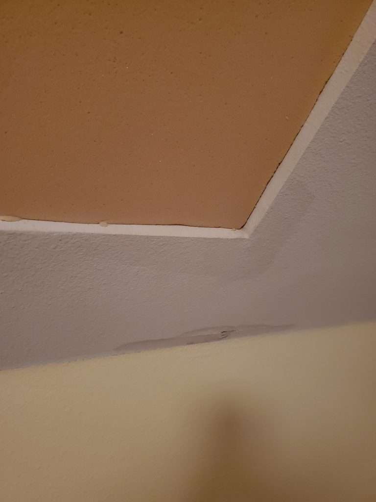 Now I realize the leak has been there for awhile. Looing up directly above the pool on the floor I noticed the dry wall tape has buckled and the dry wall feels damp.